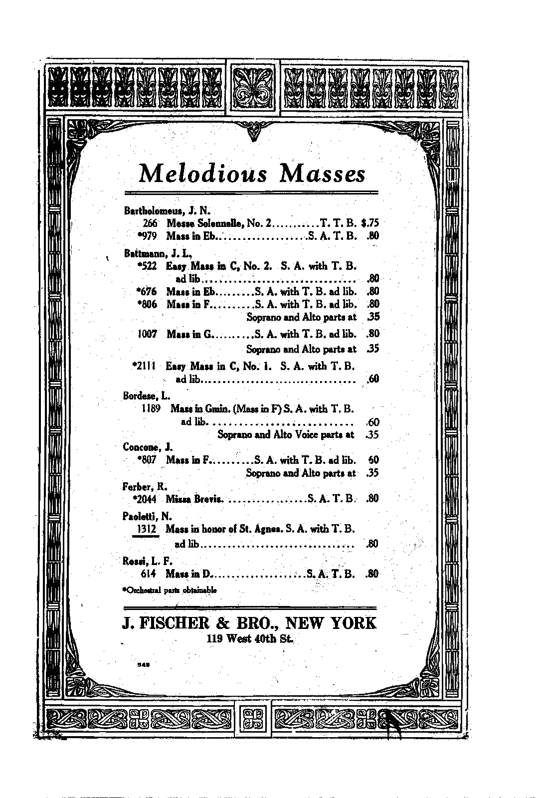 | Genre Categories | Masses; Religious works; Works with undetermined instrumentation; |