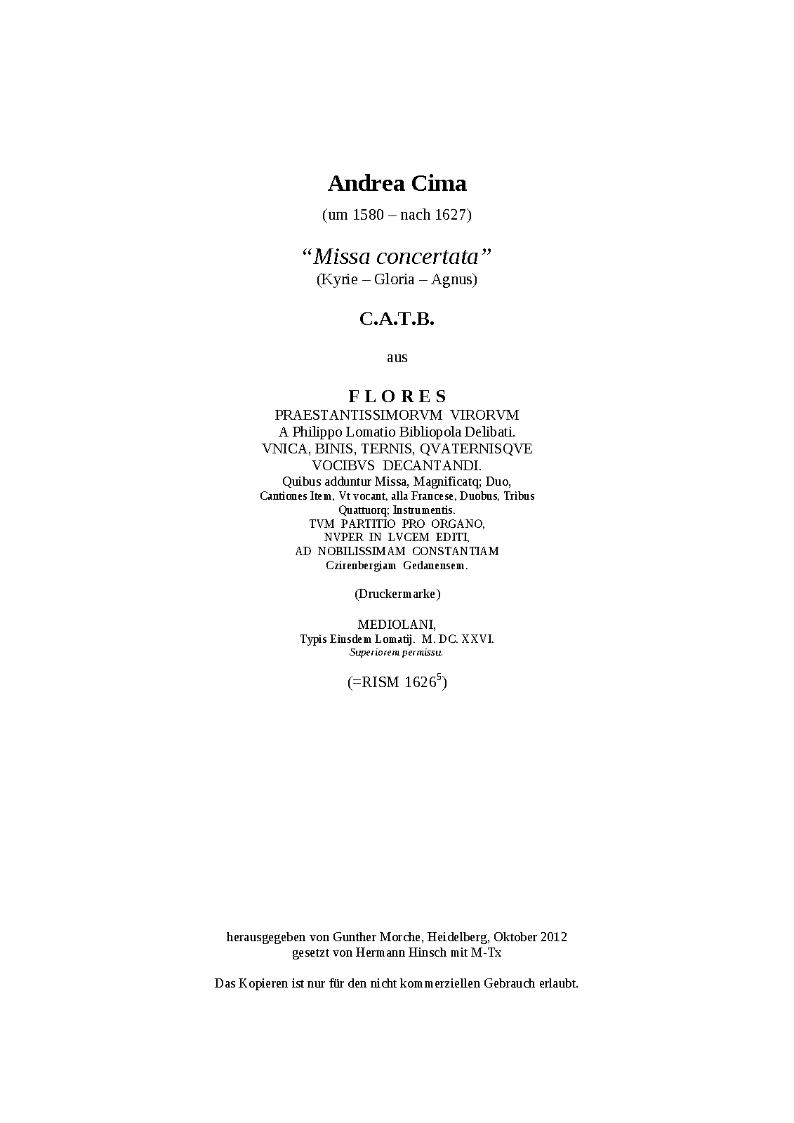 | Genre Categories | Masses; Religious works; For 4 voices, continuo; |