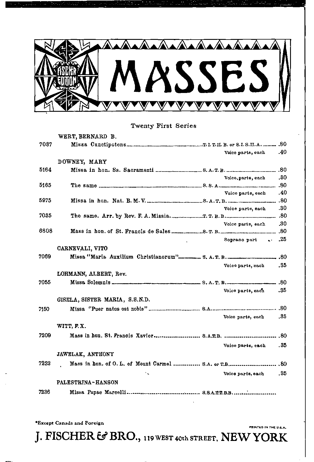 | Genre Categories | Masses; Religious works; For 2 voices, organ; |