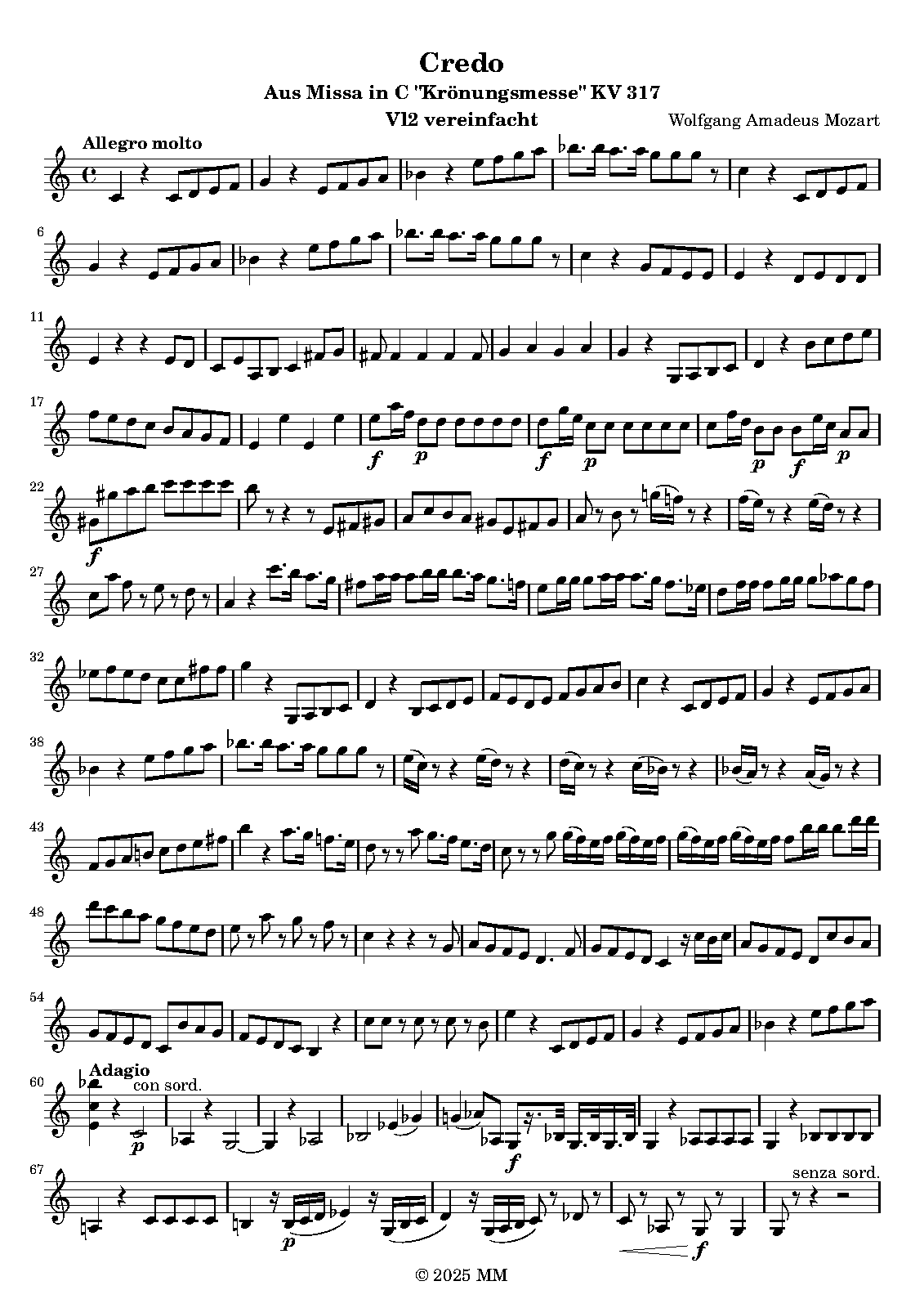 Misc. Notes File has been split after the Credo, due to file size. Second file also contains Mozart's separate Horn particella.