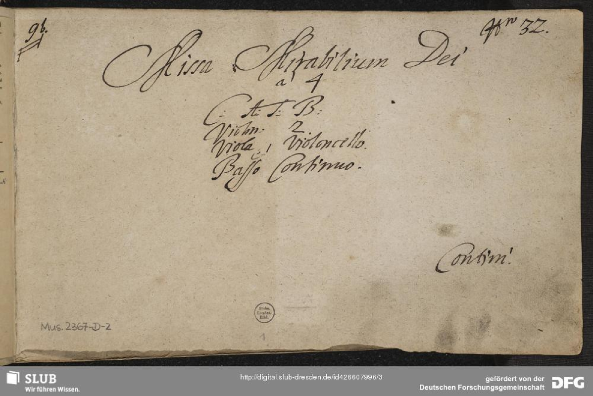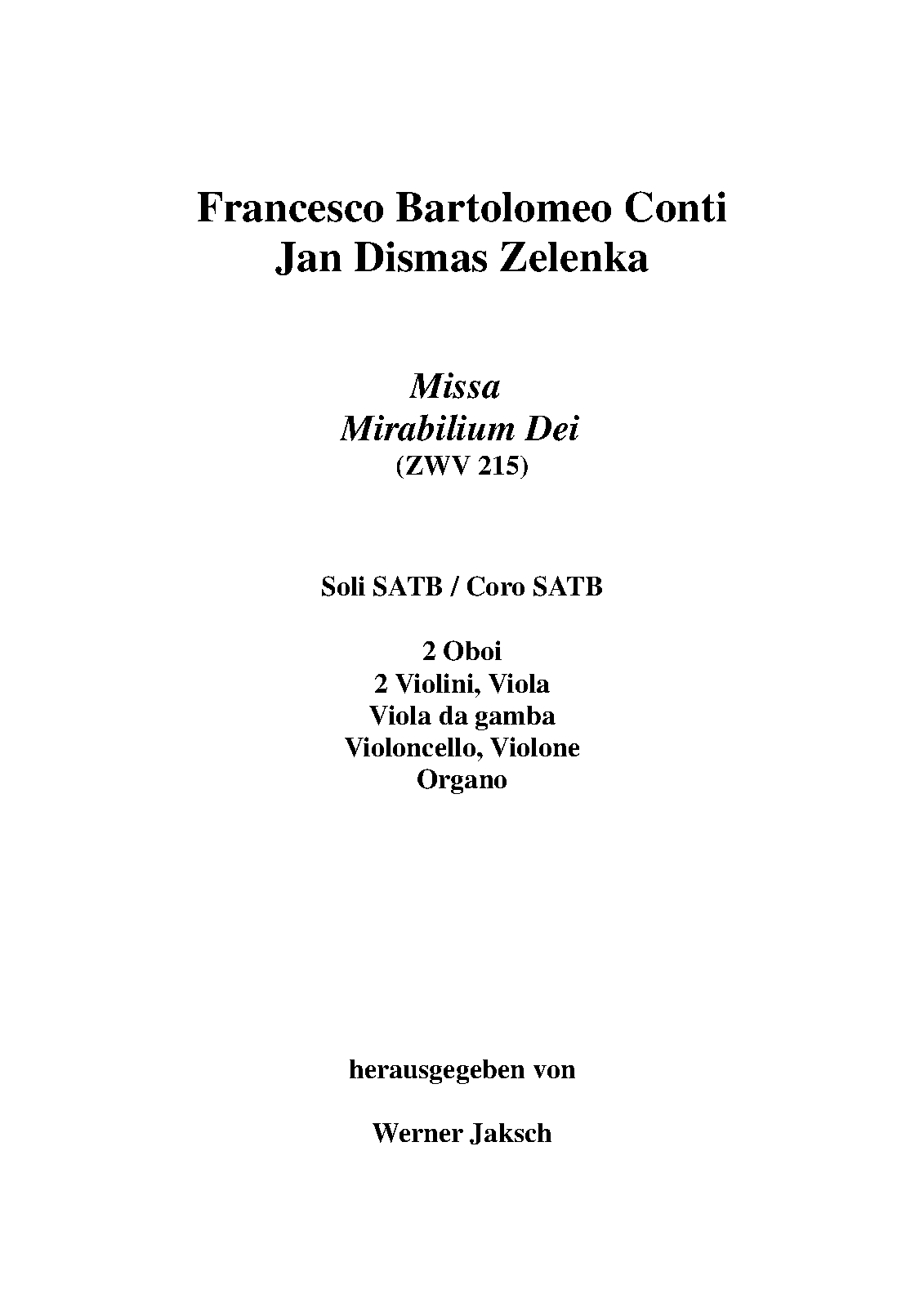 | Extra Information | Revised and called "Missa Mirabilium Dei" by J.D. Zelenka, in ZWV listed as ZWV 215. Compare RISM 212006792 |