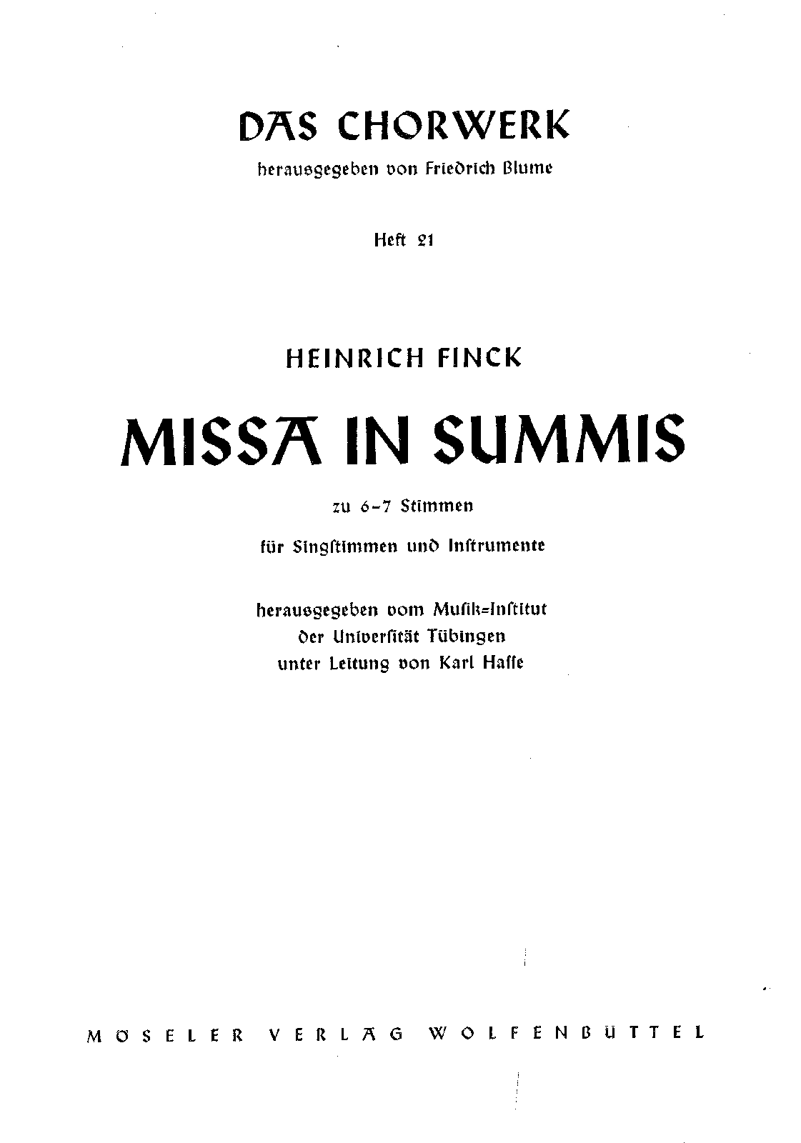 | Work Title | Missa in Summis |