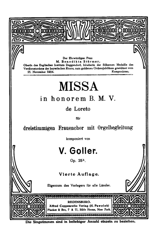 | First Publication | 1905 – Regensburg: Alfred Coppenrath's Verlag (H. Pawelek) (Monatsbericht (1905), p.138) |