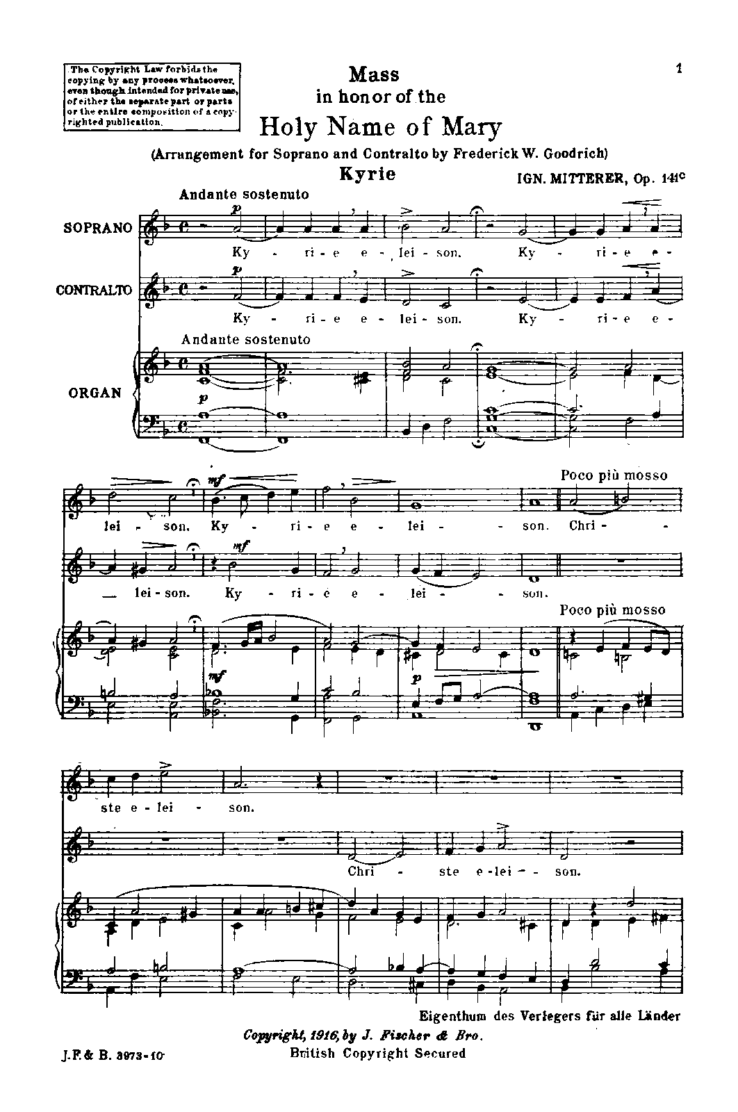 New York: J. Fischer & Brother, 1916. Plate J. F. & B. 3973.