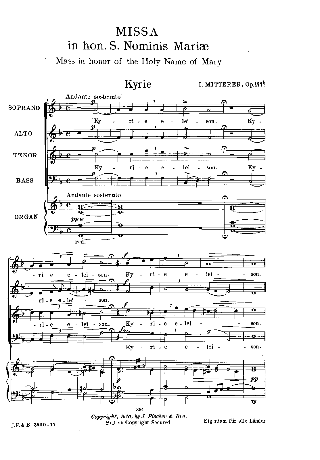 New York: J. Fischer & Bro., No. 3400, 1910. Plate J.F. & B. 3400-14.