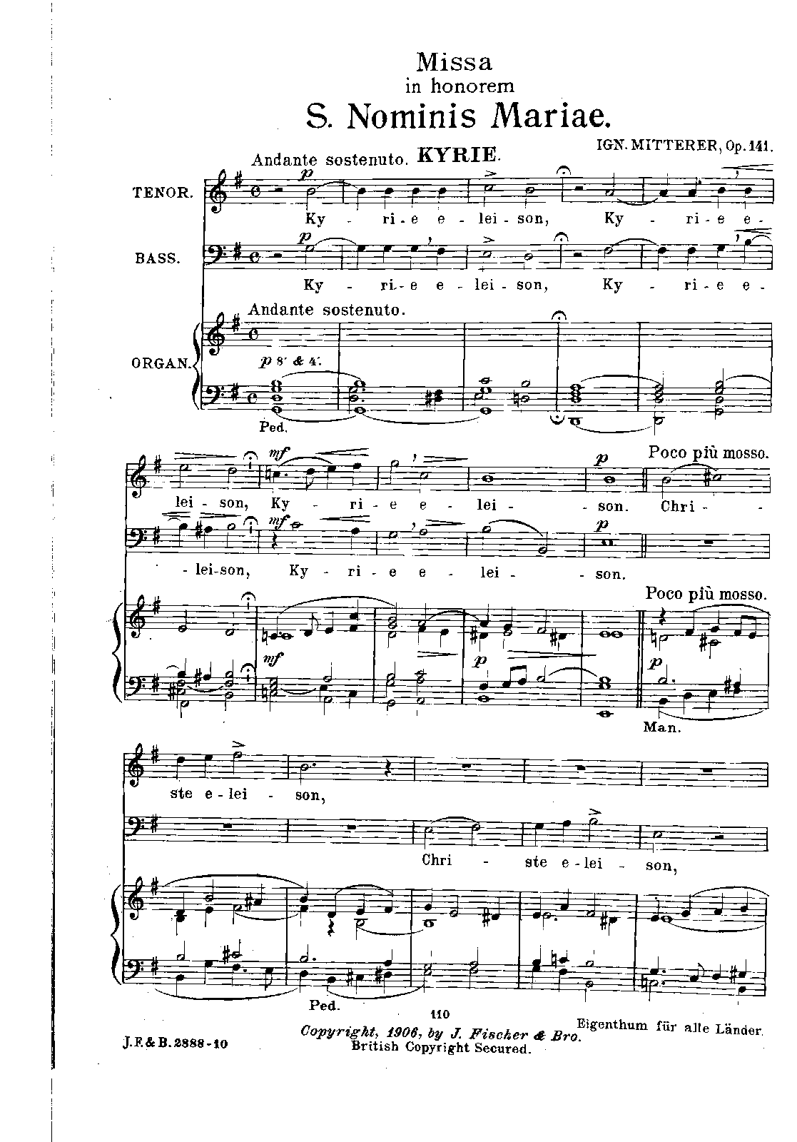 New York: J. Fischer & Bro., No. 2888, 1906. Plate J.F. & B. 2888-10.