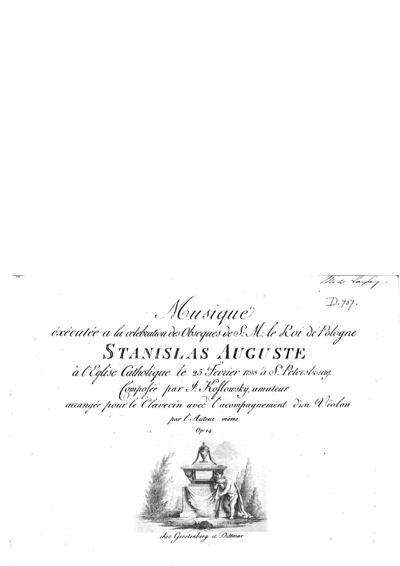 Exécutée à la Célébration des obsèques de S. M. le Roi de Pologne Stanislas Auguste, à l'église Catholique le 25. Fevrier 1798 à St. Pétersbourg par les Musiciens de la Chapelle Impériale.