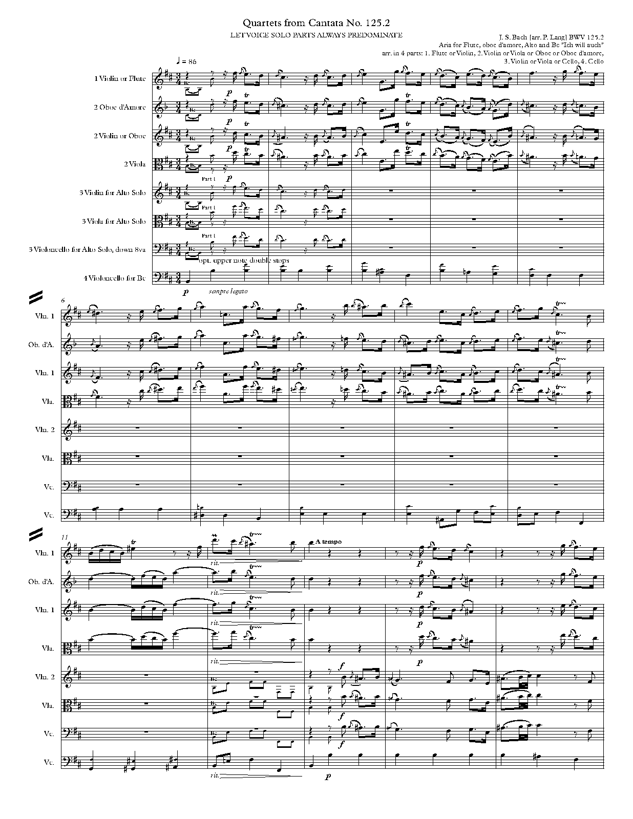 For Quartets: Flute and Oboe or Oboe d'Amore ad lib. and Strings (Lang)