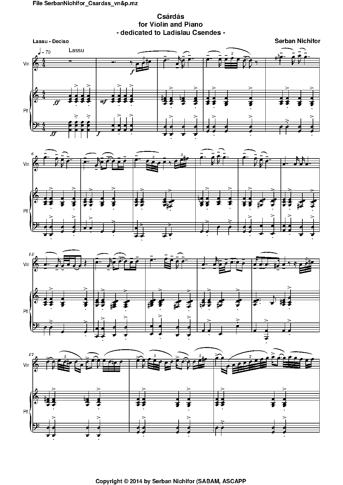 ⇒ 18 more: 2. Homage to Gershwin (8-12-2007) • 3. Happy - to Liana Alexandra (30-3-2008) • 4. Snowflake Waltz (9-8-2008) • 5. Blues (31-7-2010) • 6. E' Vero Tango (17-11-2012) • 7. In Memory of Jaco Pastorius (29-12-2013) • 8. Et Cum Spiritu Tuo (2013) • 9. Utah Central Railroad Song (2013) • 10. Moments (I), to Vlad Solomon (2014) • 11. Dance Steps, to Vlad Solomon (2014) • 12. Moments (II), to Vlad Solomon (2014) • 13. Initials, to Vlad Solomon (2014) • 14. Kaddish, to Benedict Solomon (2014) • 15. Csárdás for 2 Bassons and Piano, to Godri Orban (2014) • 16. Homage to Enescu for Cello Solo (23-XI-2014) • 17. Sarmizegedusa for Cello and Tape (29-XI-2014) • 18. Variation on "O, What Great News!" (Romanian Carol, 2014) • 19. Victory, to the Romanian Armed Forces (2014)