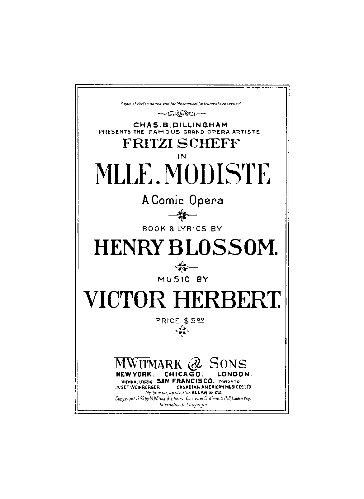 | First Publication. | 1905 – New York: M. Witmark & Sons |