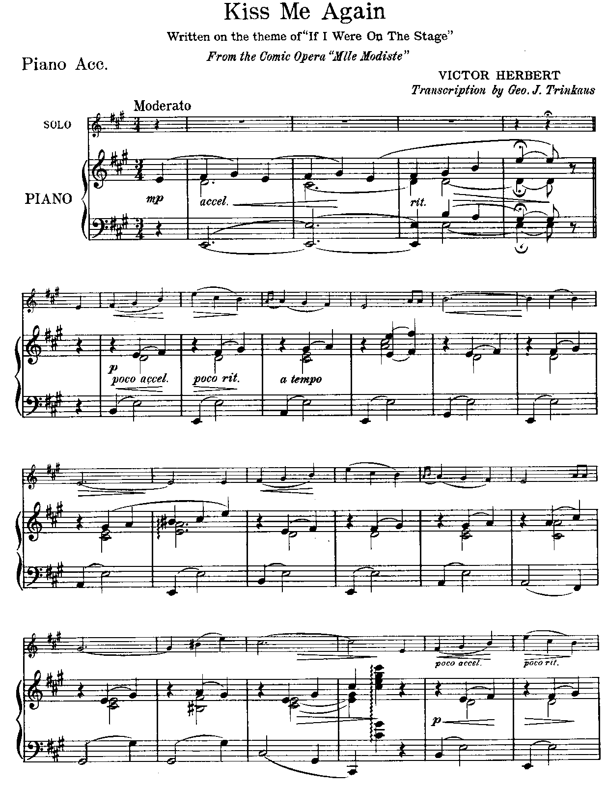 | Related Works | Kiss Me Again was based on "If I Were On the Stage" from Mlle. Modiste. |