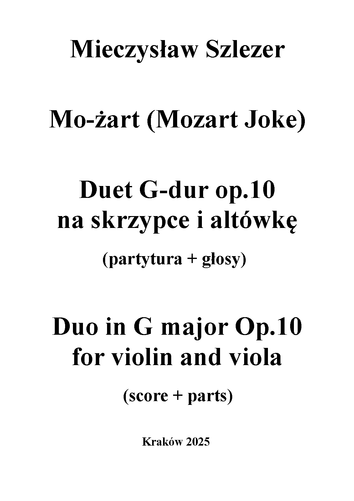 | Composer | Szlezer, Mieczysław A. |