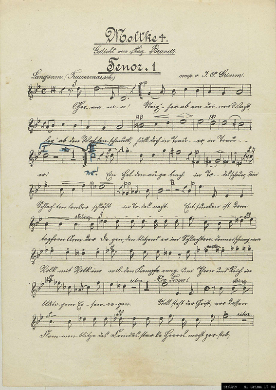 | Alternative. Title | Moltke † Gedicht von Aug. Brandt für Männenchor mit Begleitung von Blasinstrumenten |