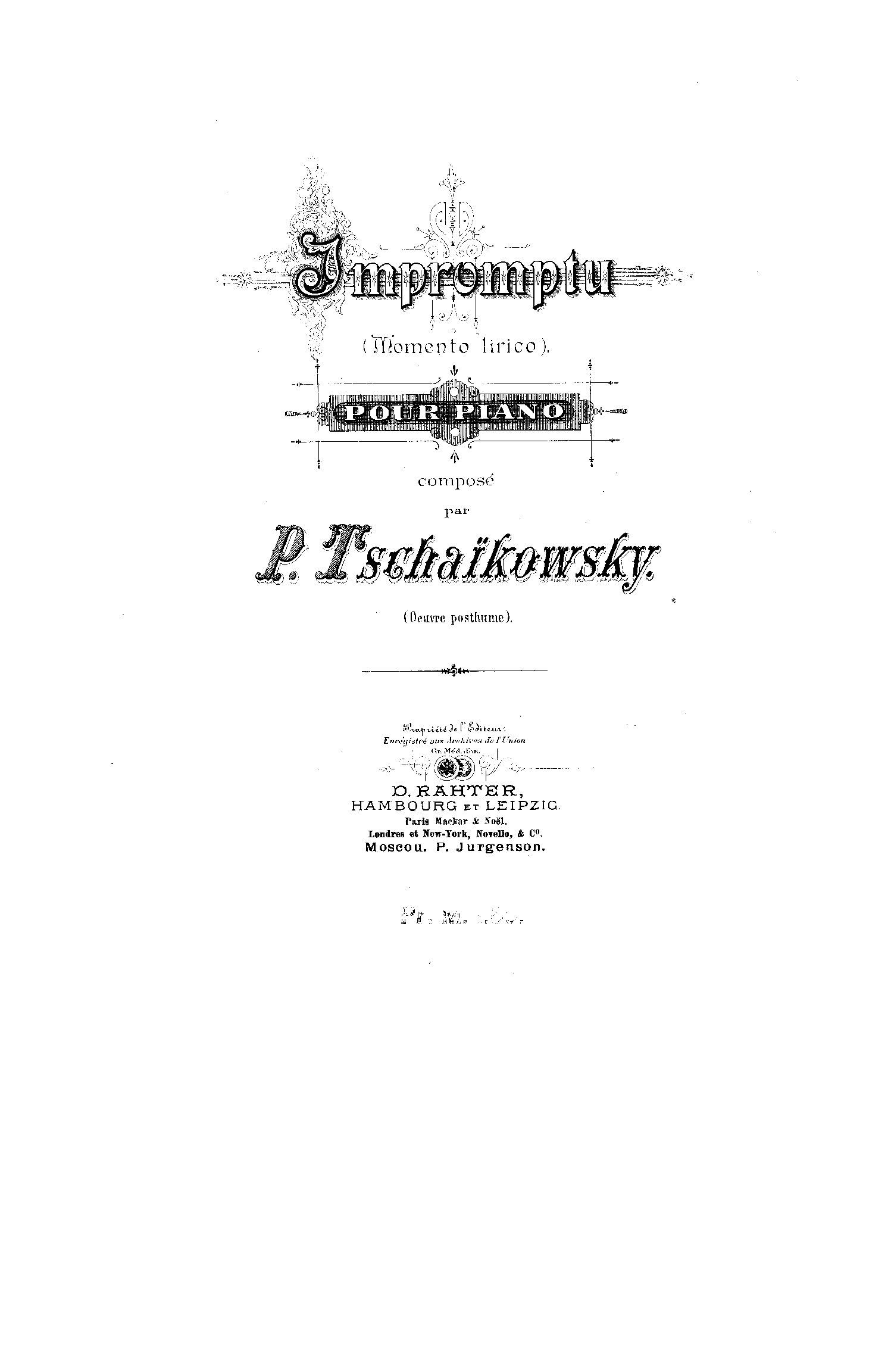 Extra Information After Tchaikovsky's death, Sergey Taneyev found the composer's sketches for this piano piece, which he completed and published under the title Impromptu (Momento lirico). However, Taneyev was unaware that Tchaikovsky had completed the piece in 1892, and that it had already been published by Urbanek in Prague under its original title of Moment lyrique.