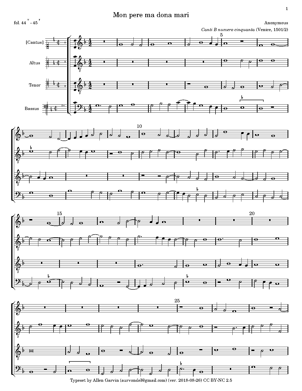 1501 in Canti B (Petrucci press, Venice)