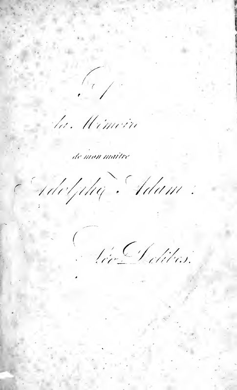 | Dedication | A la Mémoire de mon Maître, Adolphe Adam |
