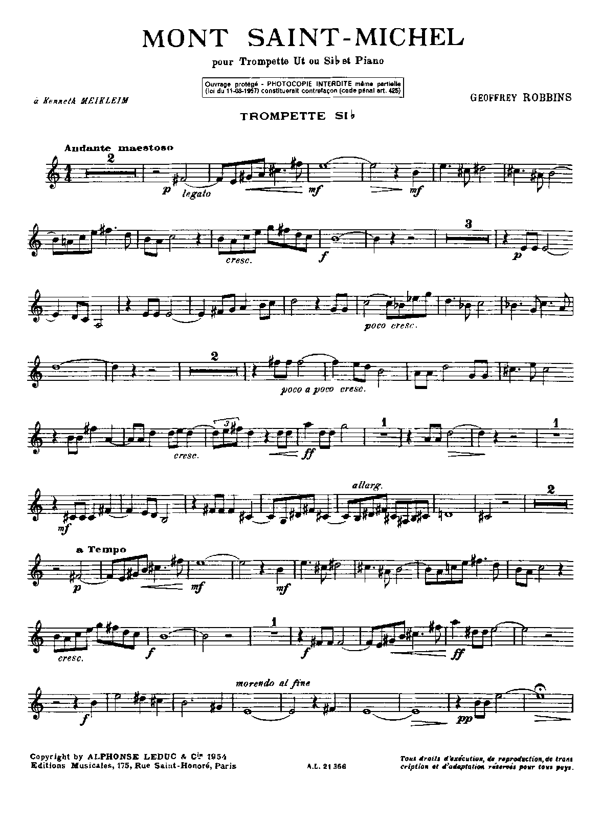 Paris: Alphonse Leduc, 1954. Plate A.L. 21356.