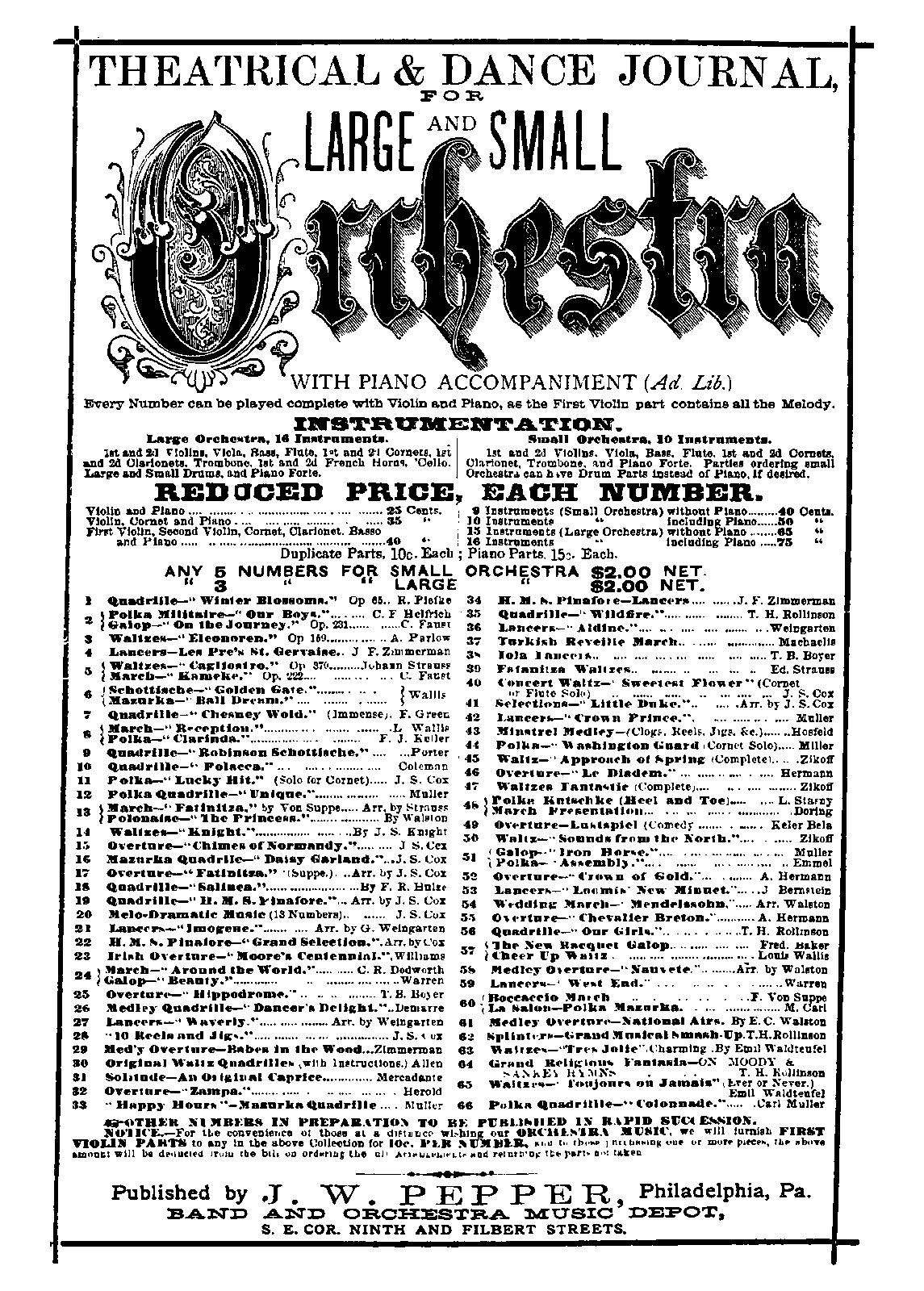 | Genre Categories | Quicksteps; Dances; For orchestra; Scores featuring the orchestra |
