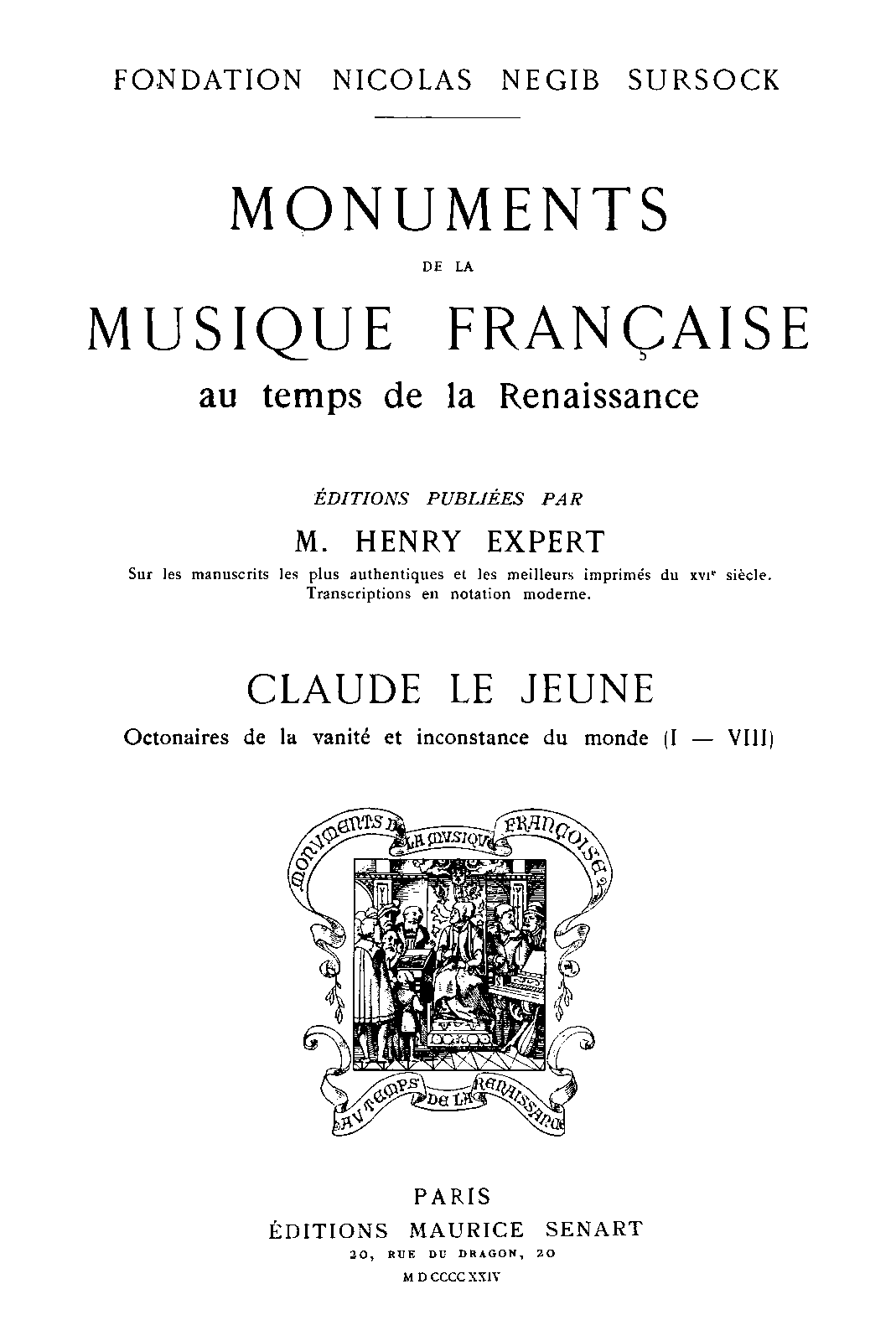 MONUMENTS DE LA MUSIQUE FRANÇAISE AU TEMPS DE LA RENAISSANCE |