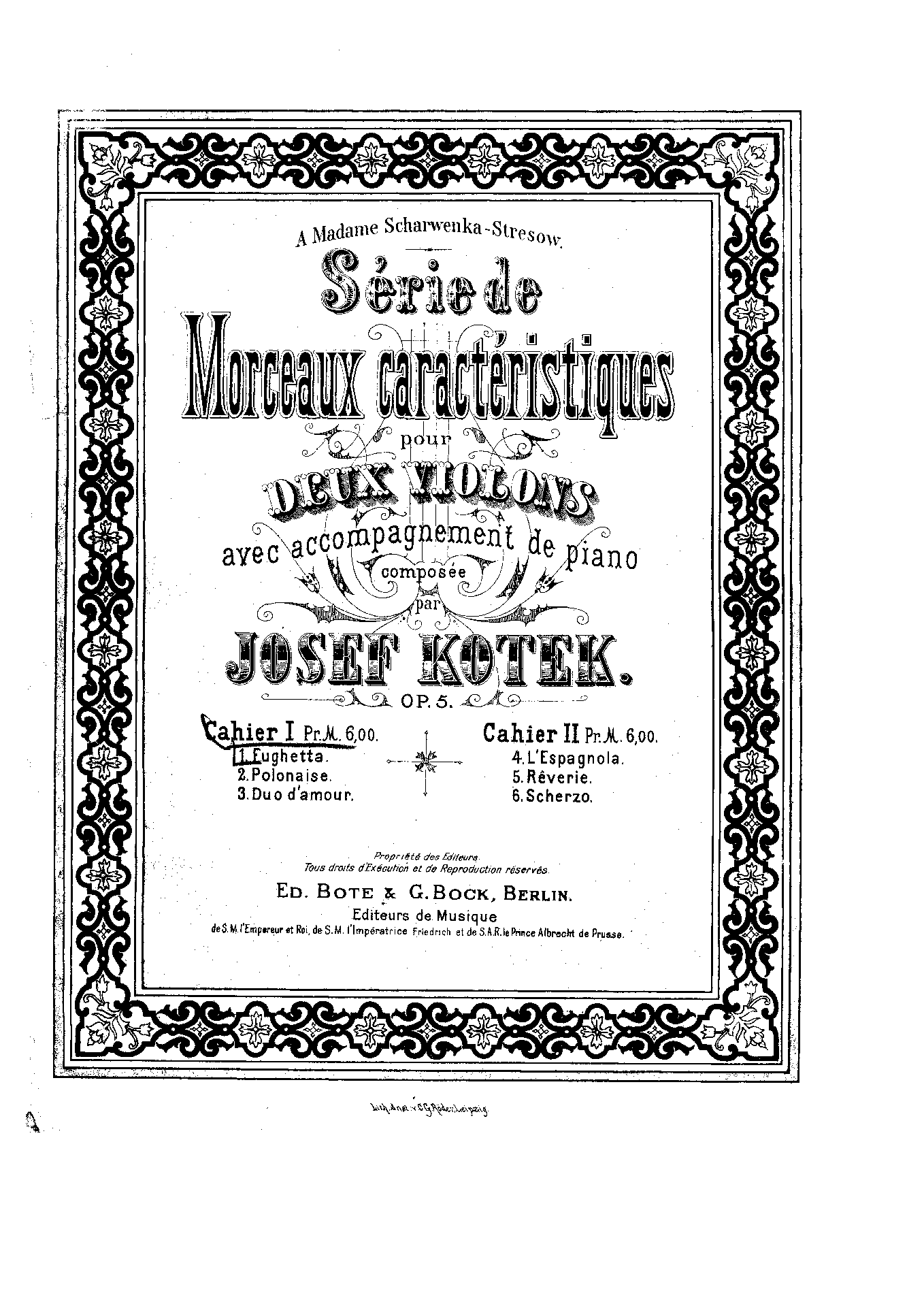 | Dedication | A Madame Scharwenka-Stresow |