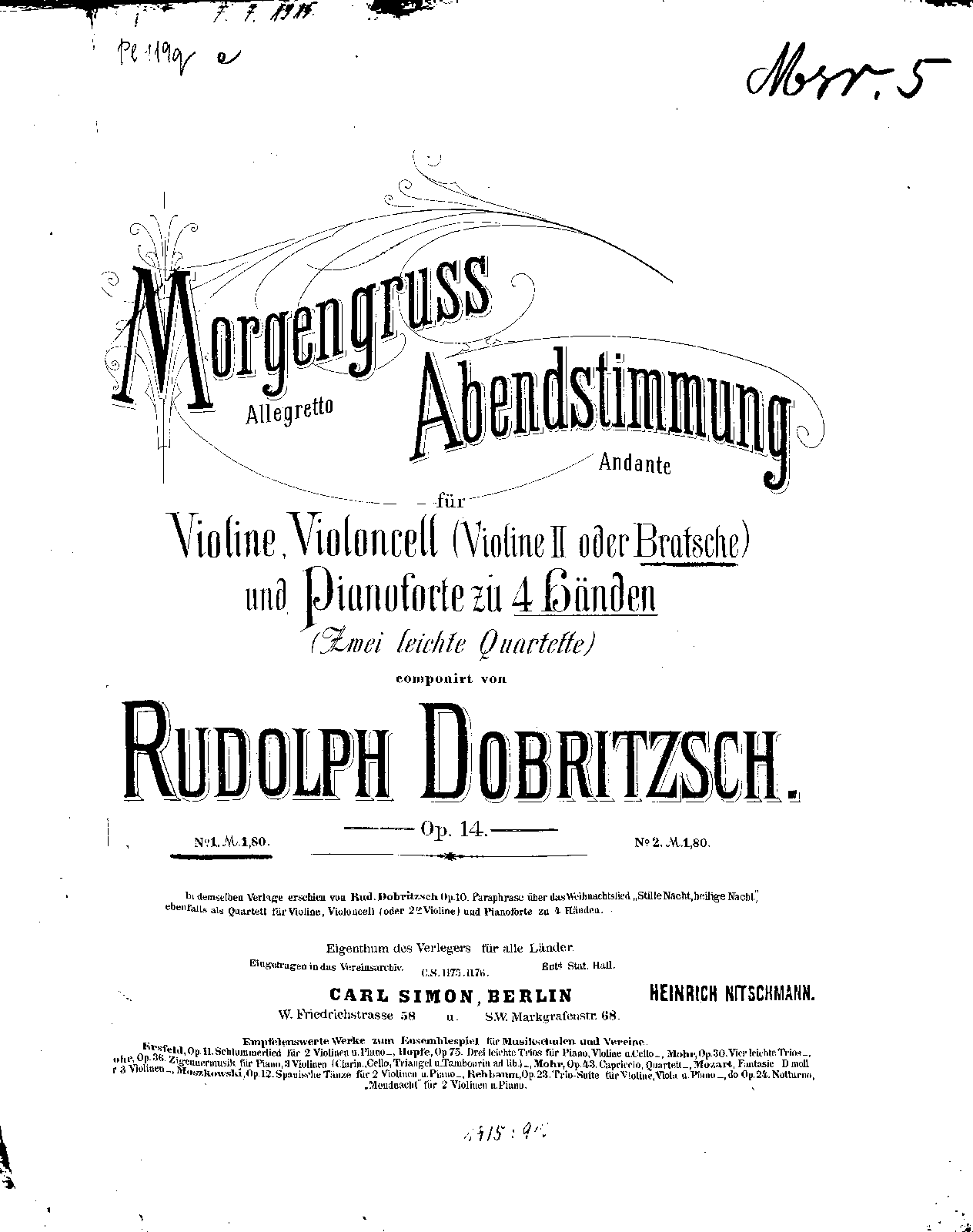 | Work Title | Morgengruss und Abendstimmung, Op.14 |
