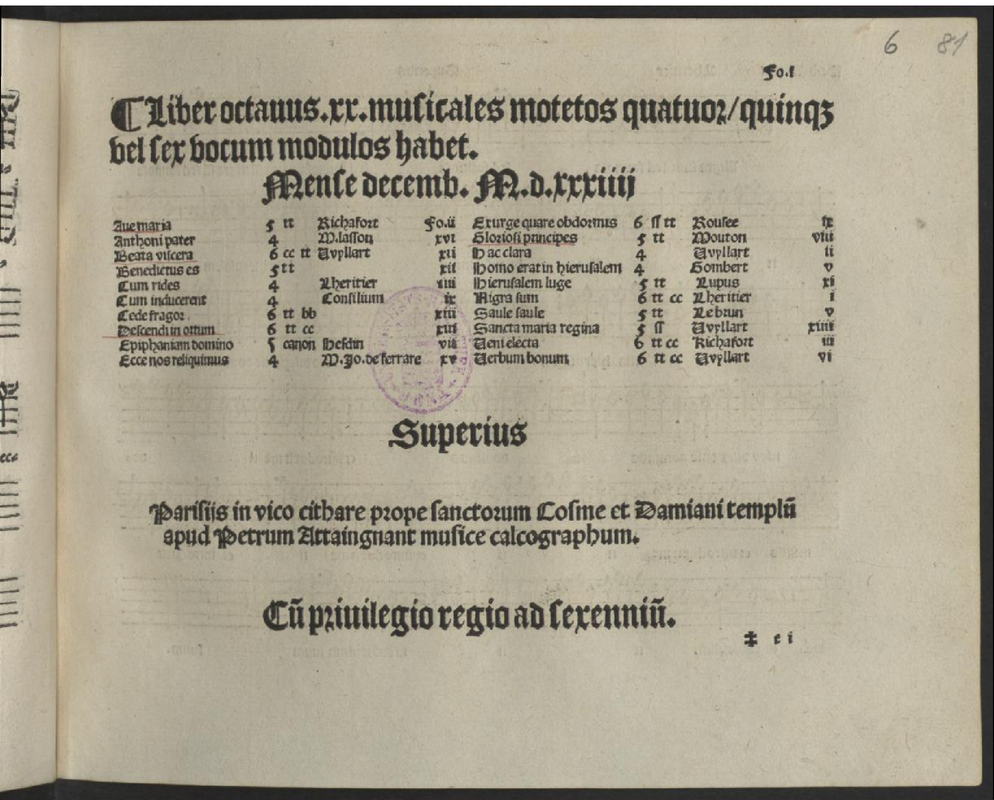 Publisher. Info. Paris: Pierre Attaingnant, 1534.