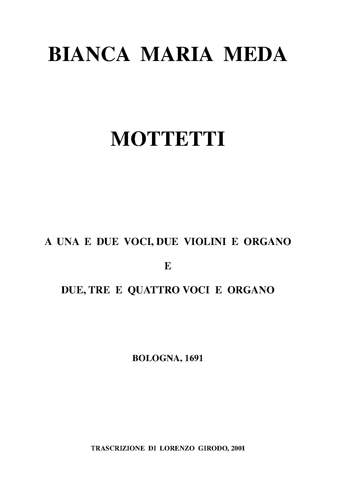- 1. Cari musici (soprano, 2 violins, continuo)