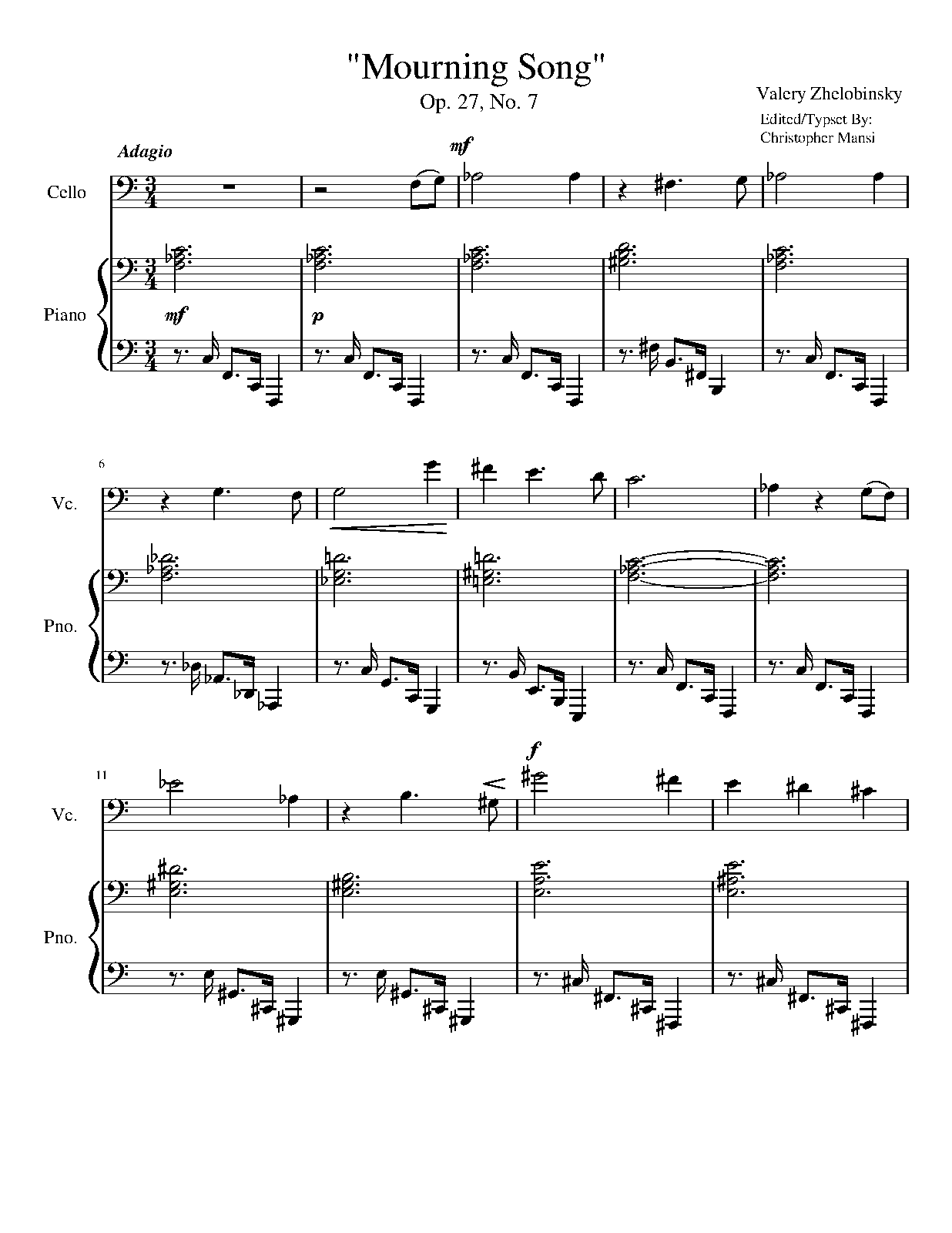 Unrelated to the Op. 27 Three Pieces for Piano, which saw actual publication. The other six pieces (at least, presumably) from the set are not currently accounted for, the only autograph copy of the "Mourning Song" resides in the State Archives of Literature and Art in St. Petersburg, Russia. The opus number discrepancy cannot be explained, other than to say that it isn't the only example of the composer re-numbering/overwriting an opus number at a later date.