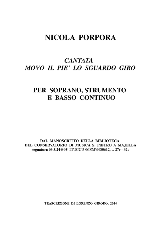 | Genre Categories | Secular cantatas; Cantatas; For voice, violin, continuo; |