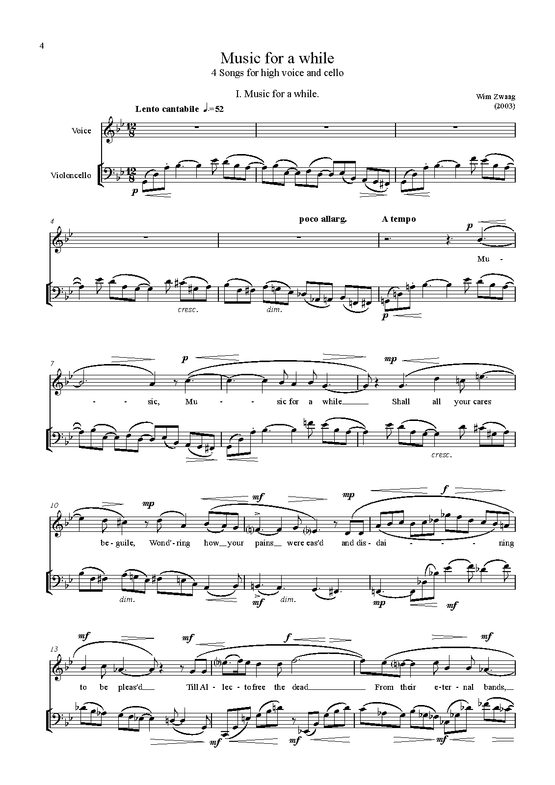 | Movements/SectionsMov'ts/Sec's | 4 songs |