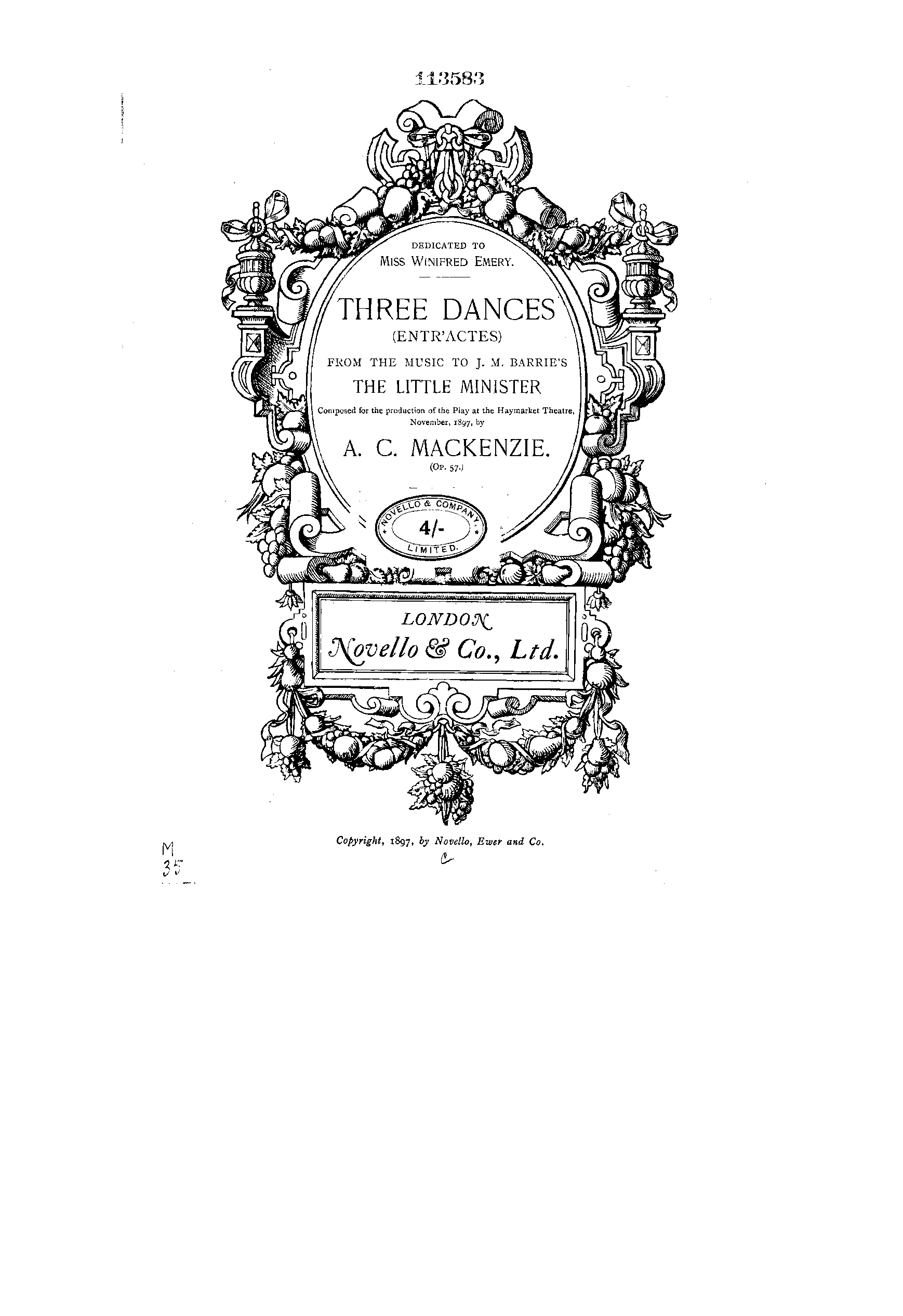 | Dedication | Piano Dances dedicated to Miss Winifred Emery. |