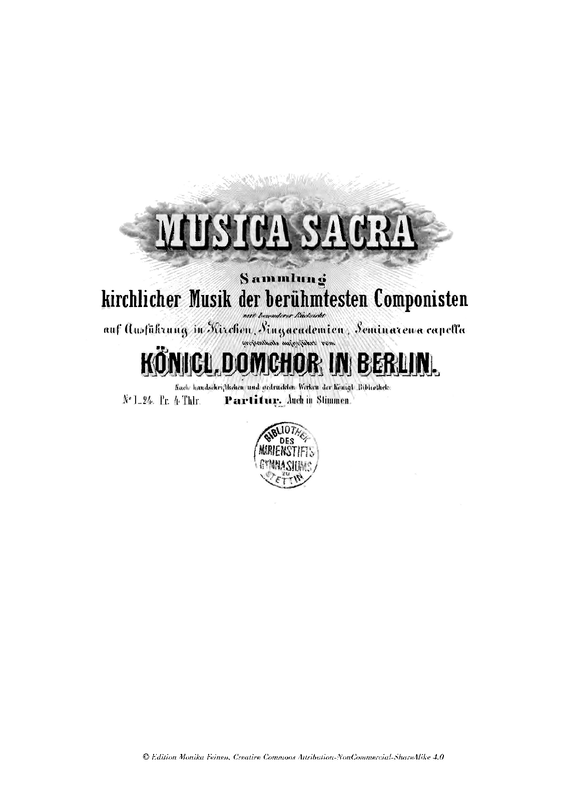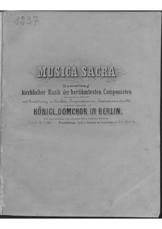 Sammlung kirchlicher Musik der berühmtester Componisten : grossentheils aufgeführt vom Königl. Domchor in Berlin : nach handschriftlichen und gedruckten Werken der Königl. Bibliothek.