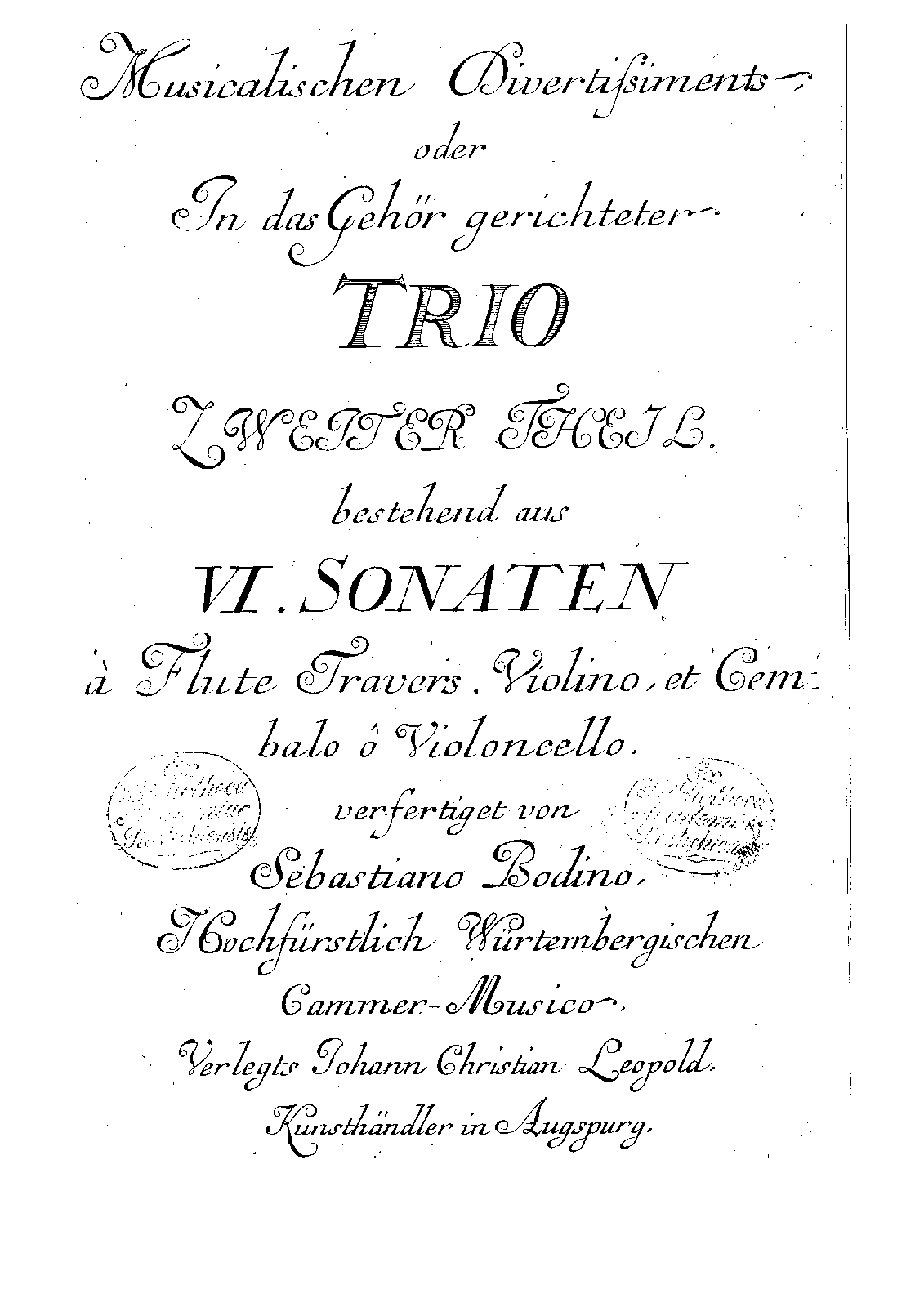 Musicalische Divertissiments, oder in das Gehör gerichteter Trio in 6 Teilen