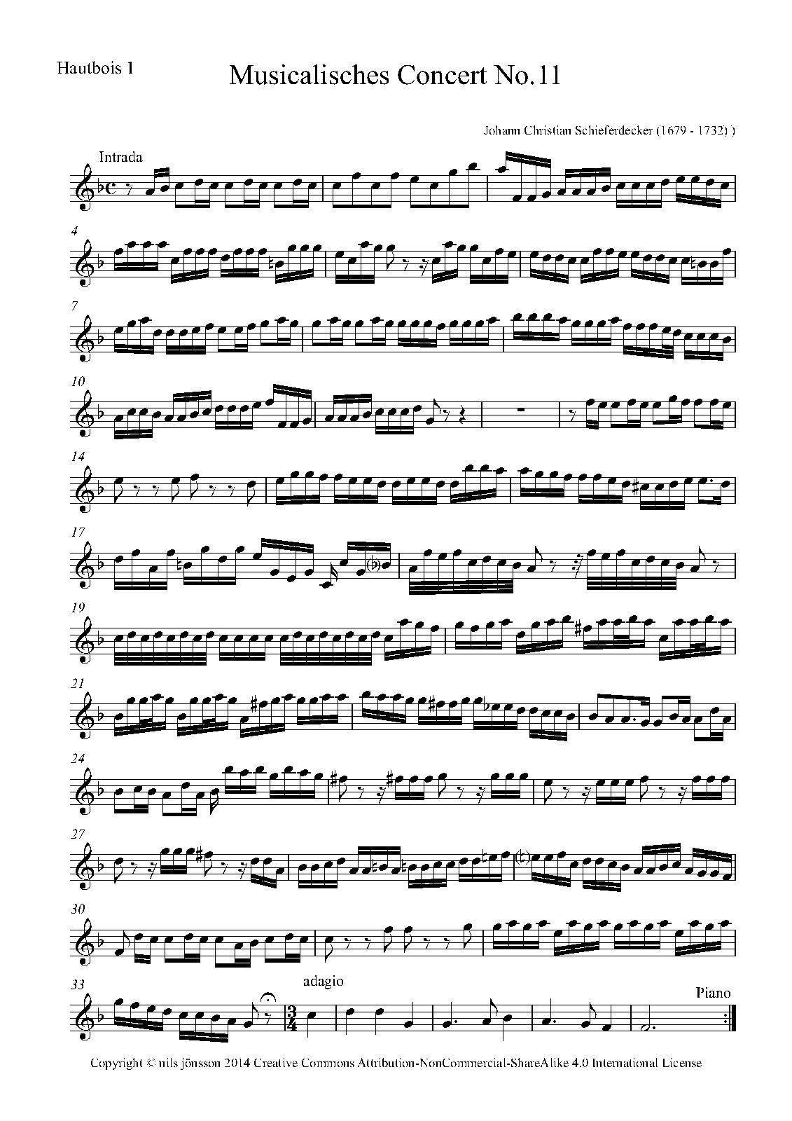 1713 in XII. Musicalische Concerte, bestehend aus etlichen Ouverturen und Suiten (No.11)
