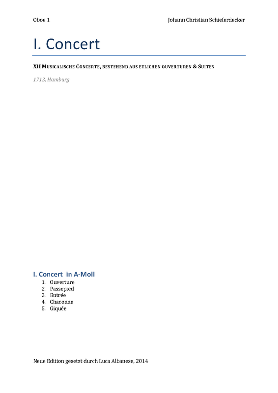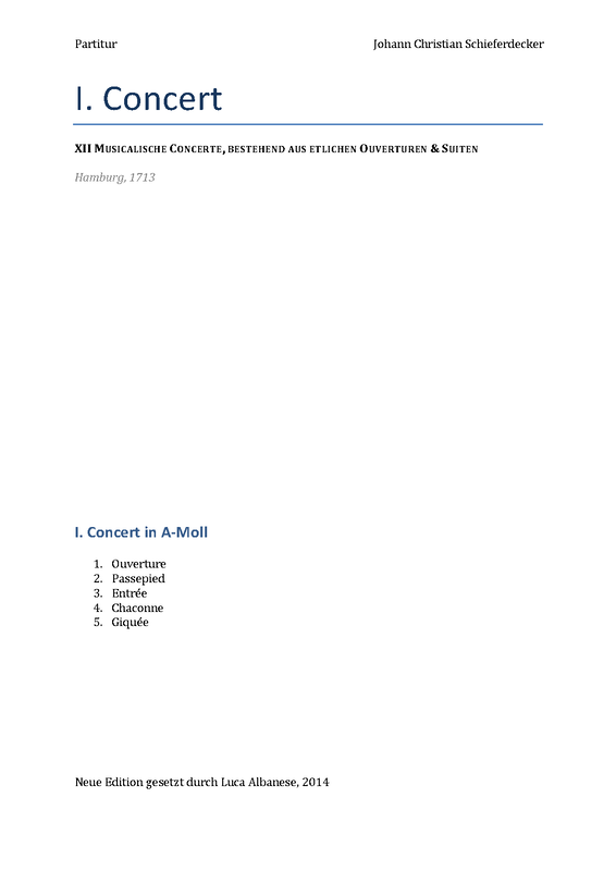 1713 in XII. Musicalische Concerte, bestehend aus etlichen Ouverturen und Suiten (No.1)