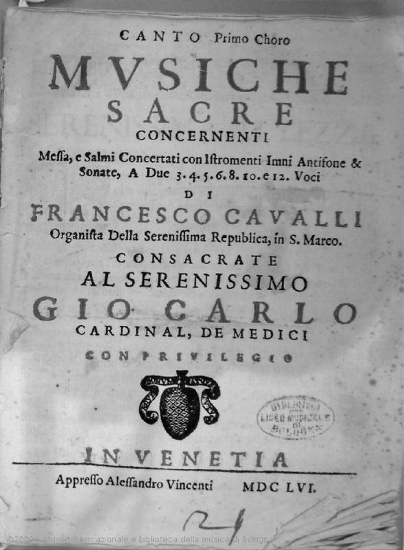 | Alternative. Title | Messa, e Salmi concertati con istromenti, imni, antifone & sonate, a due 3, 4, 5, 6, 8, 10 e 12 voci |