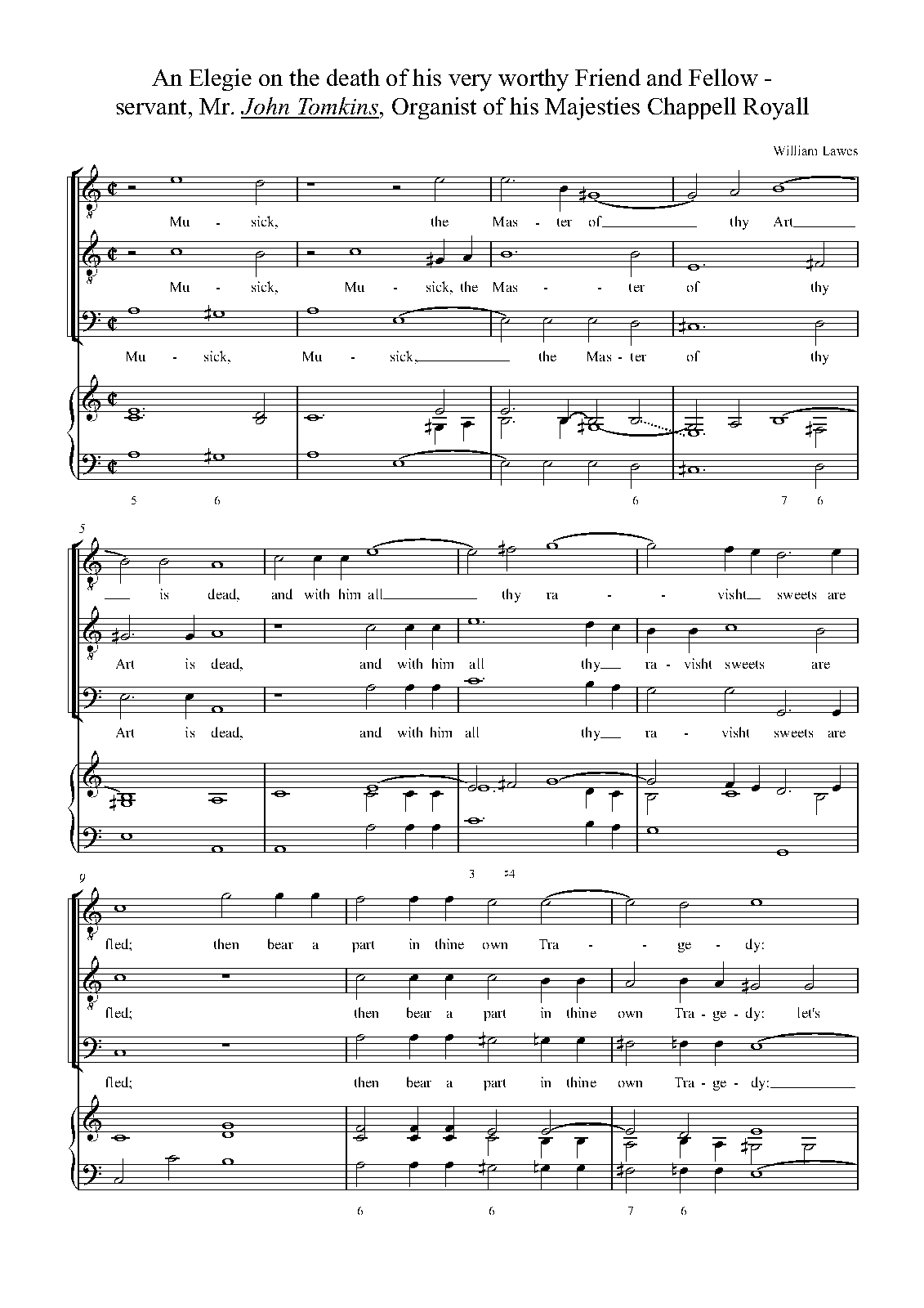 | Extra Information | Published in "Choice Psalmes" 1648 along with eight elegies for Willliam Lawes |