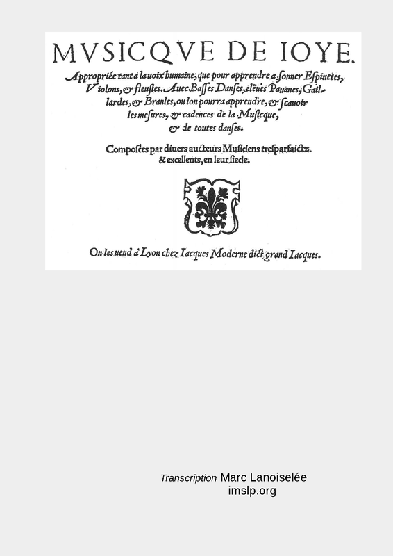 This score contains the 30 Dances Musicales, part II of the Musicque de Joye.