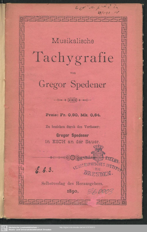 | Work Title | Musikalische Tachygrafie |