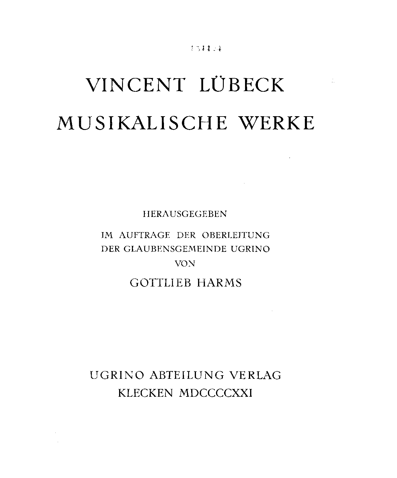 | Work Title | Vincent Lübeck: Musikalische Werke |