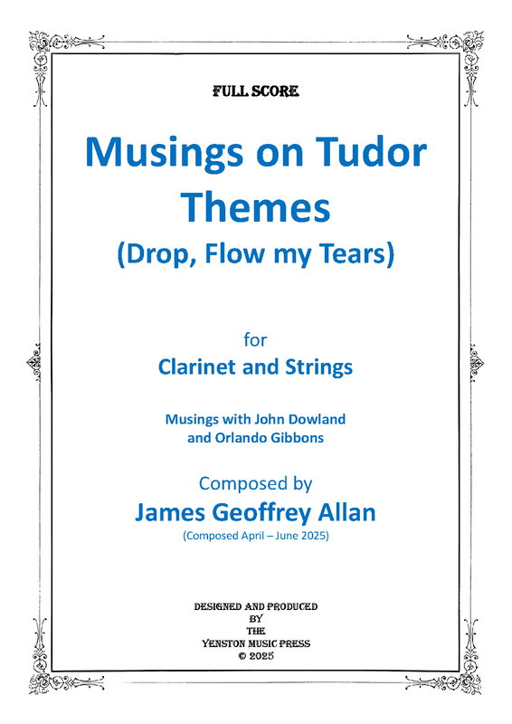 | Extra Information | This is for Clarinet and Strings - based on two pieces from Tudor/Jacobean times. I wrote this for no reason other than I love these two pieces, ‘Drop Slow Tears’ by Orlando Gibbons and the ‘Lachrimae’ by John Dowland. It is not meant to be ground breaking or anything more than a pleasant listening experience. I hope you enjoy it in the spirit in which it was written. |