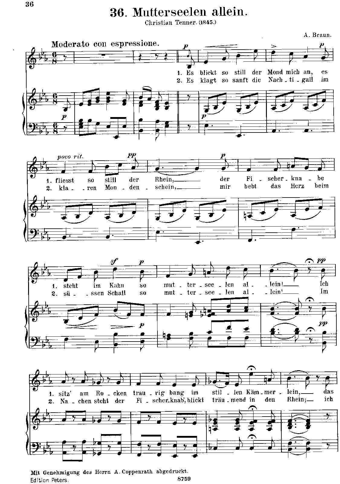 | Related Works | Mutterseelen allein (Folk Songs, German) Fantasie über 'Mutterseelenallein', Op.41, by Franz Doppler Mutterseelenallein by Ch. Berger Lieder-Blüten, Op.171, by Gustav Lange |