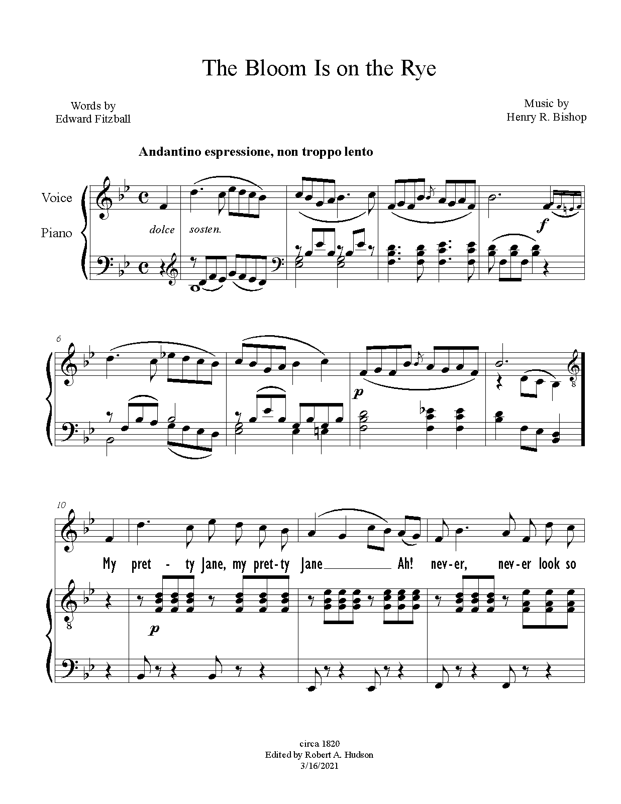 My pretty Jane, The Bloom is on the Rye.