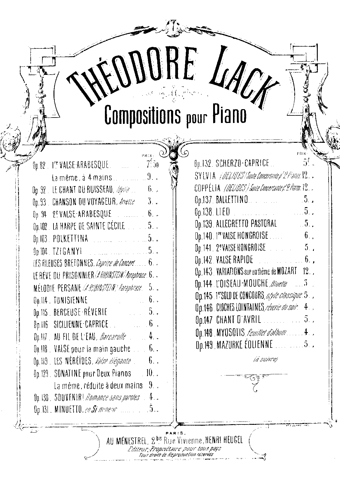 | First Publication | 1890 – Paris: Au Ménestrel, Henri Heugel |