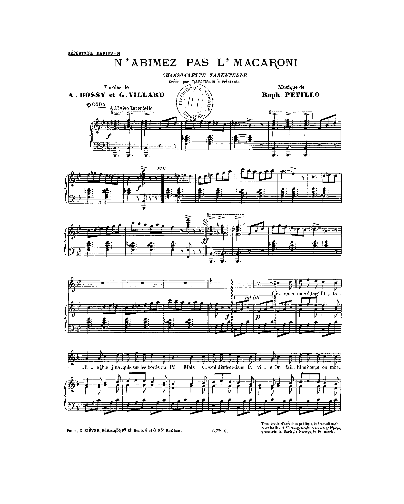 | Genre Categories | Chansons; Songs; Tarantellas; |