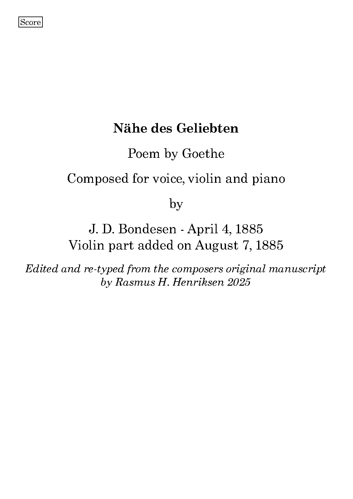 | Genre Categories | Songs; For voice, violin, piano; For voices with solo instruments; |
