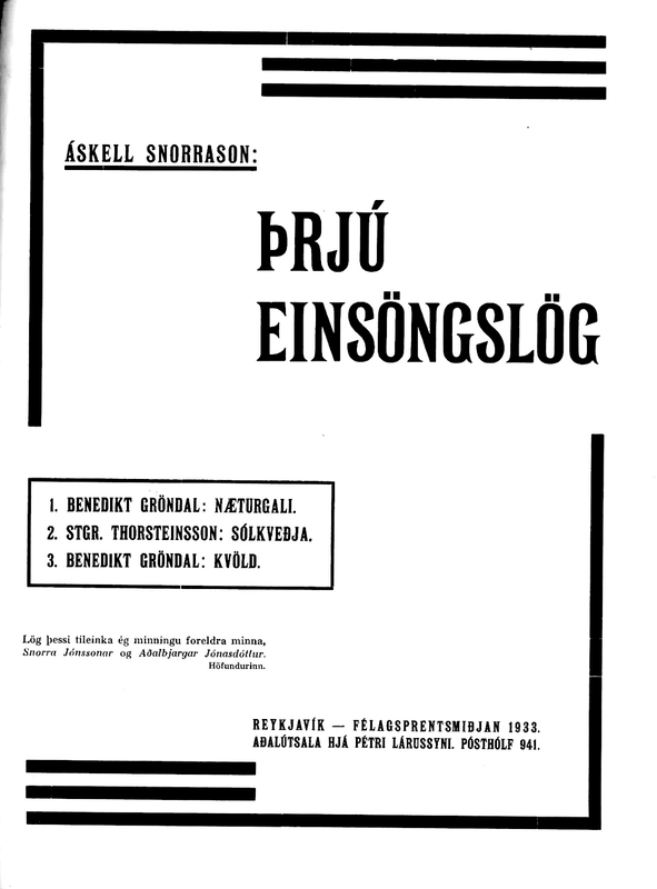 | Dedication | Tileinkað minningu foreldra tónskáldsins, Snorra Jónssonar og Aðalbjargar Jónasdóttur |