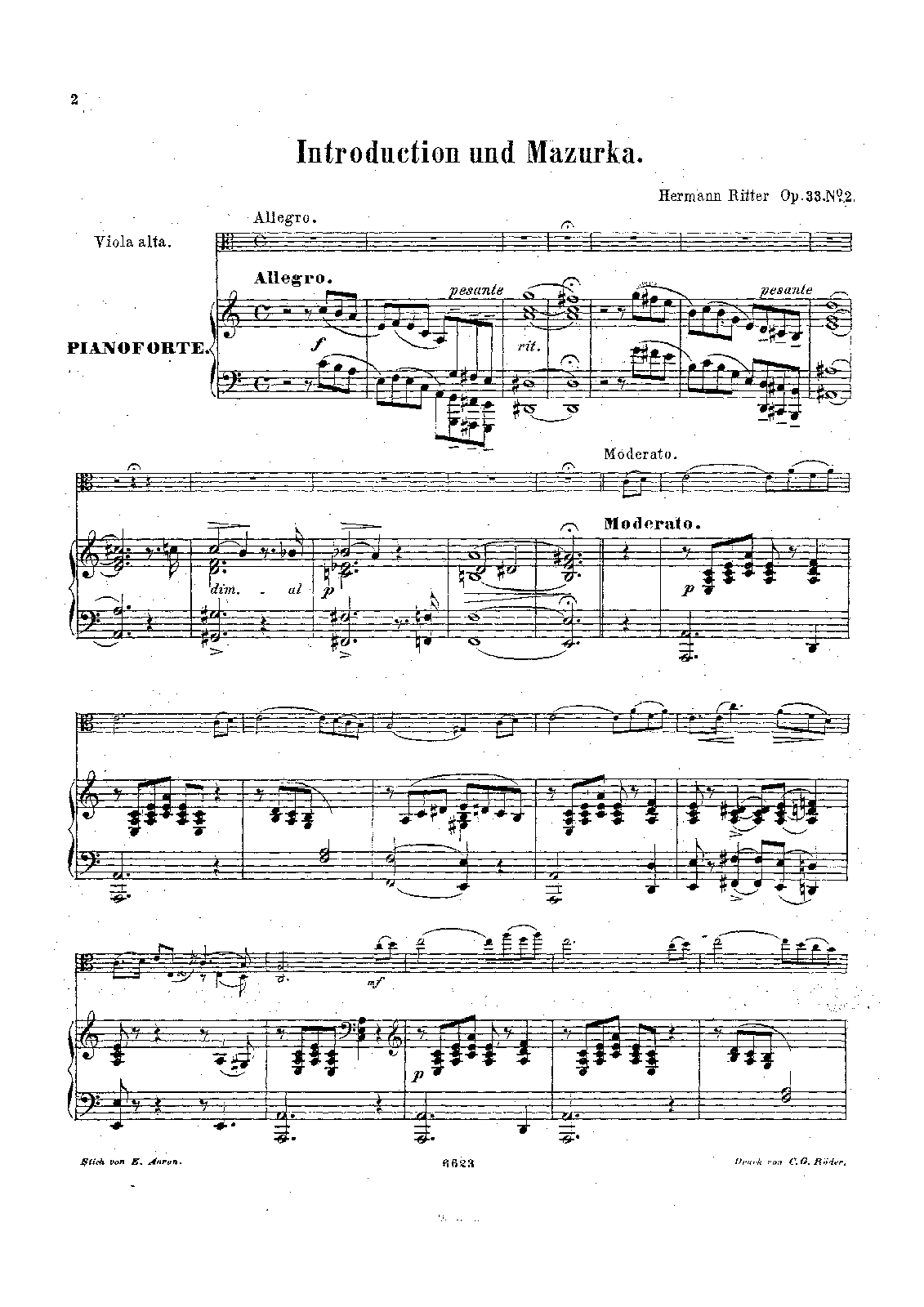 Work Title Nach Slavischen Eindrücken für Viola alta mit Begleitung des Pianoforte, Op.33
