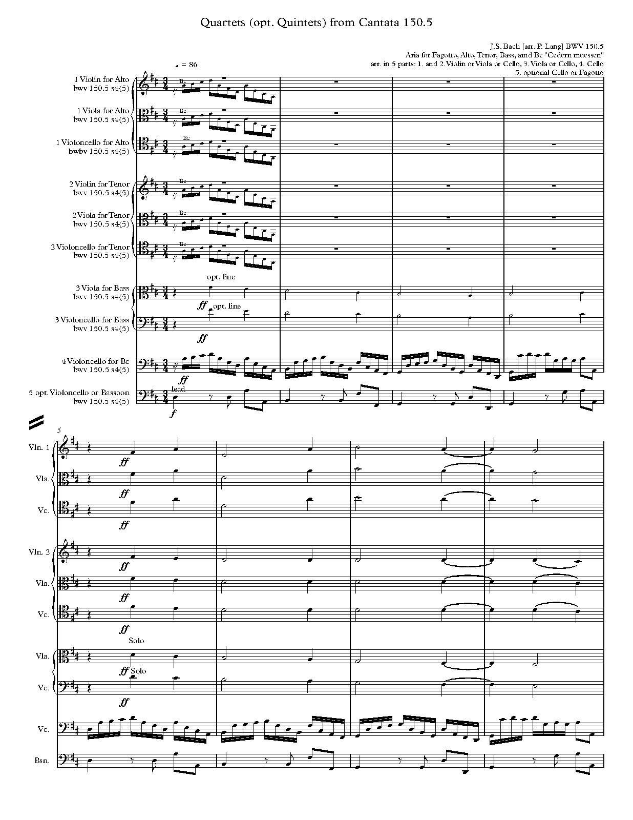 For Quartets or Quintets: Bassoon ad lib. and Strings (Lang)
