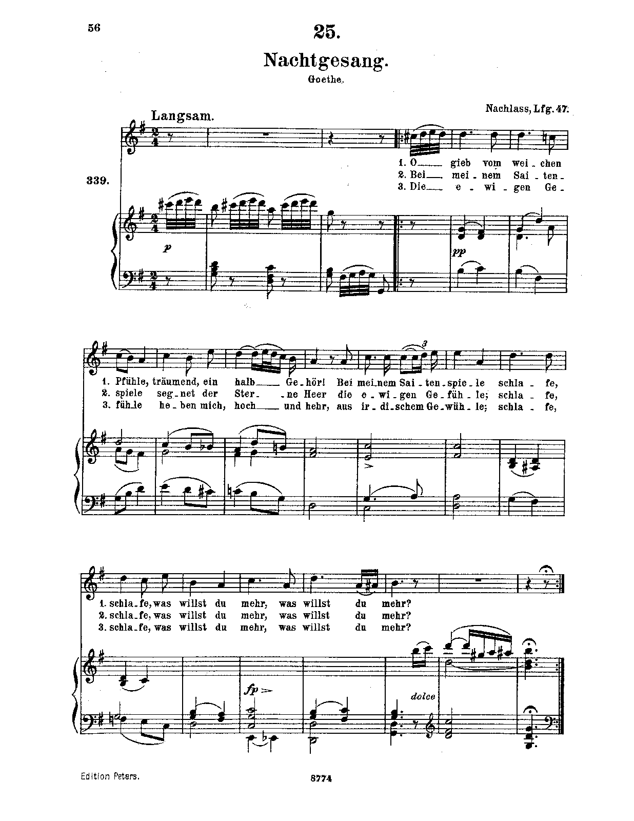 Misc. Notes The Peters edition is based on the Diabelli first edition, which omits stanzas 4-5, and includes a spurious introduction. Version in G major.